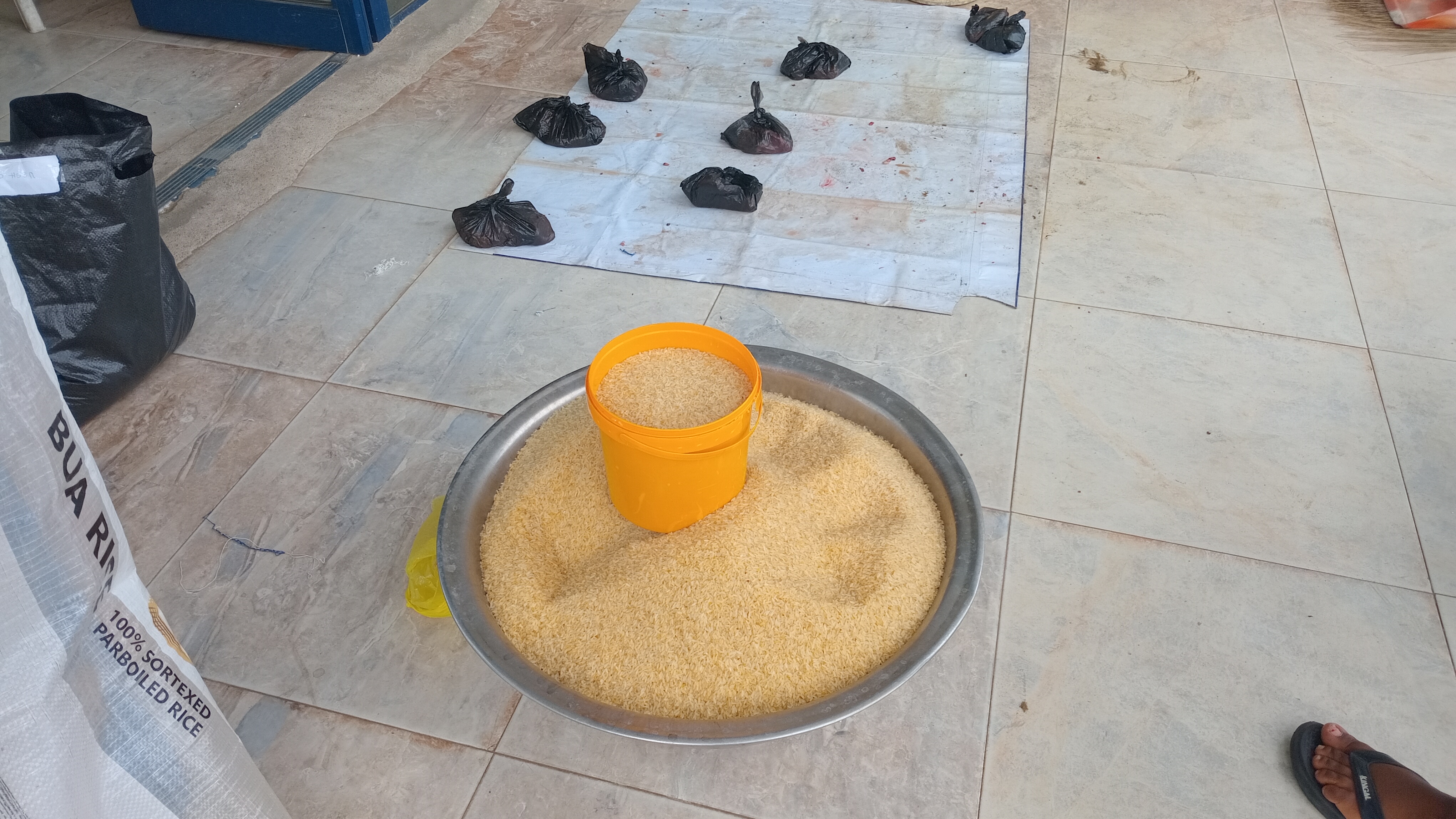 As I entered the church the pastor who called me measuring rice, while other condiments were already arranged into a sack back. I was told, pick any bag, that is your Christmas gift. It was wowed and I picked and went home. I cooked the perishable ones then we had a time at home.