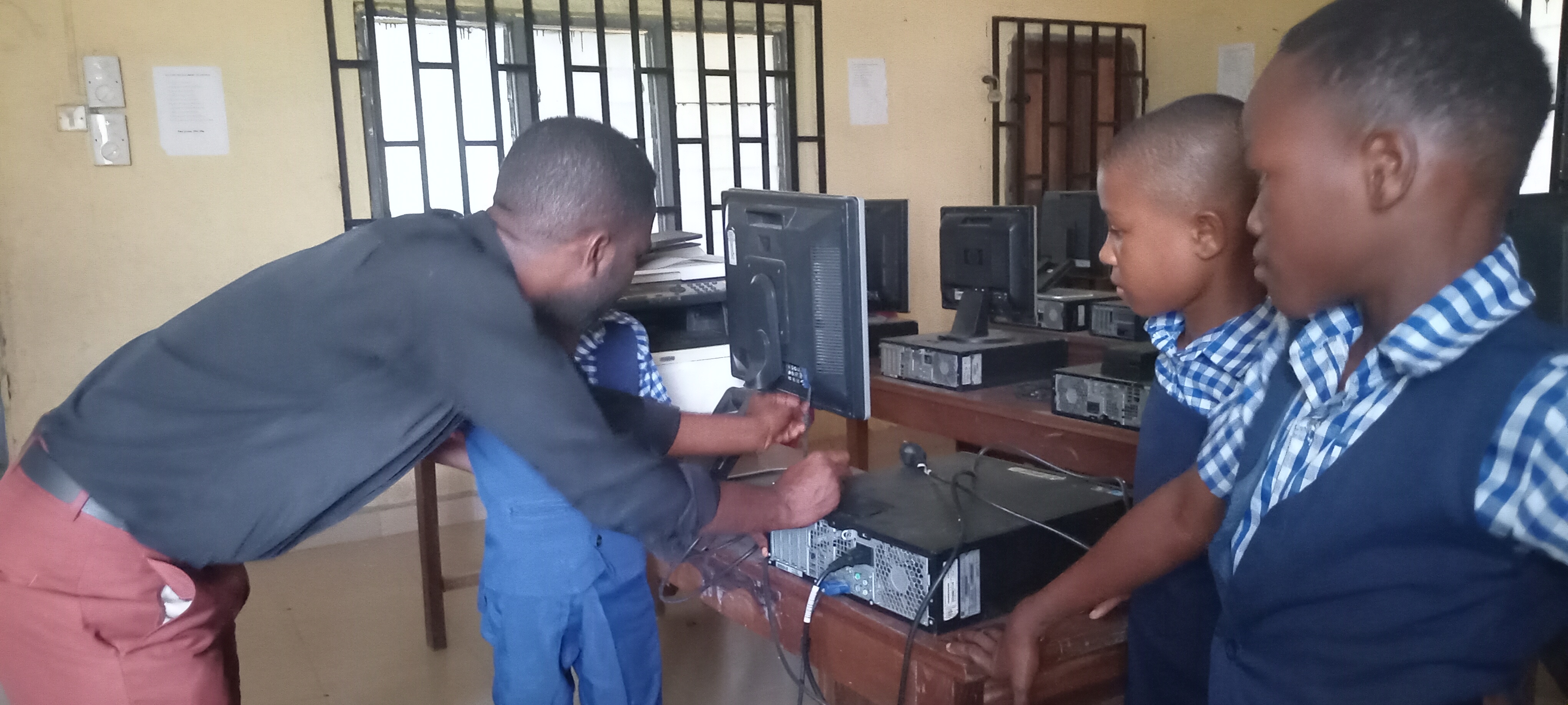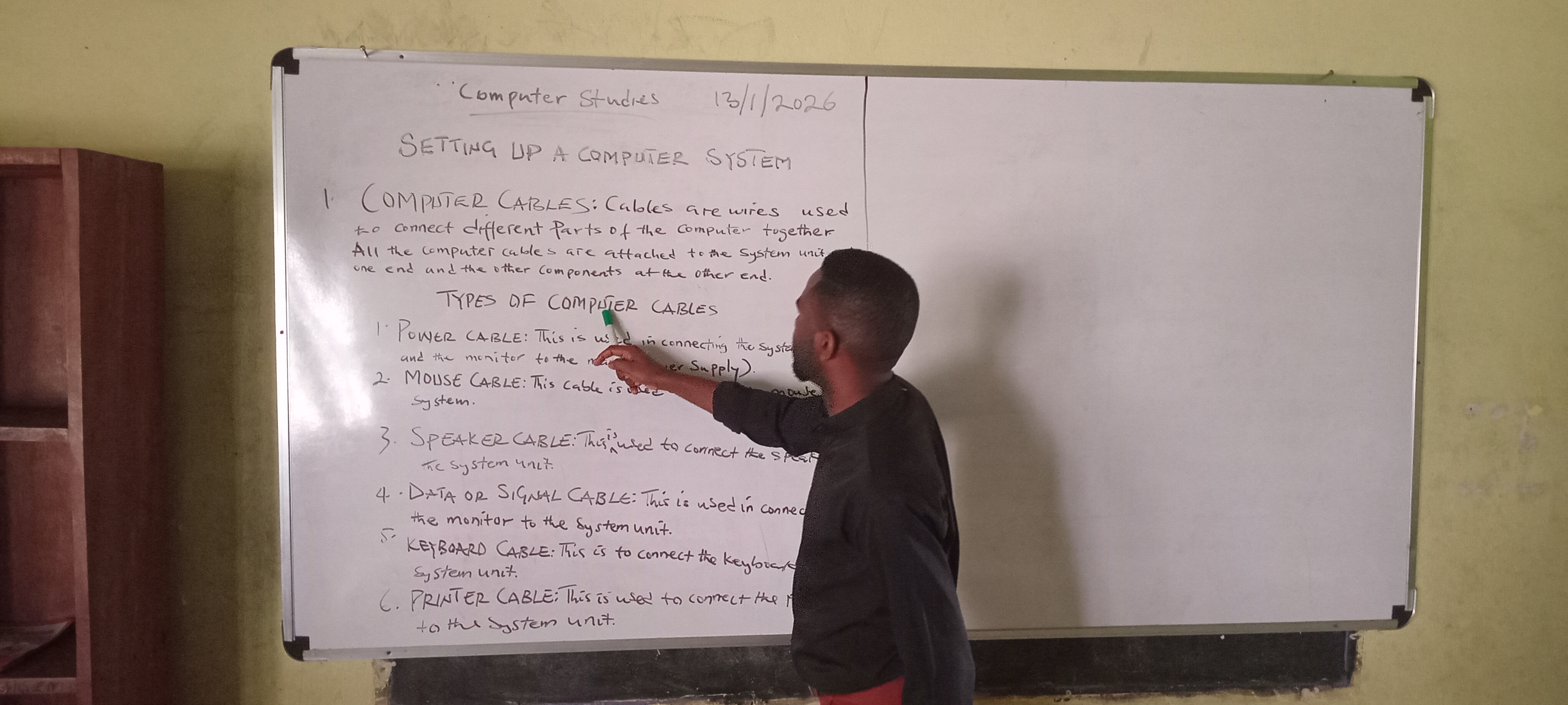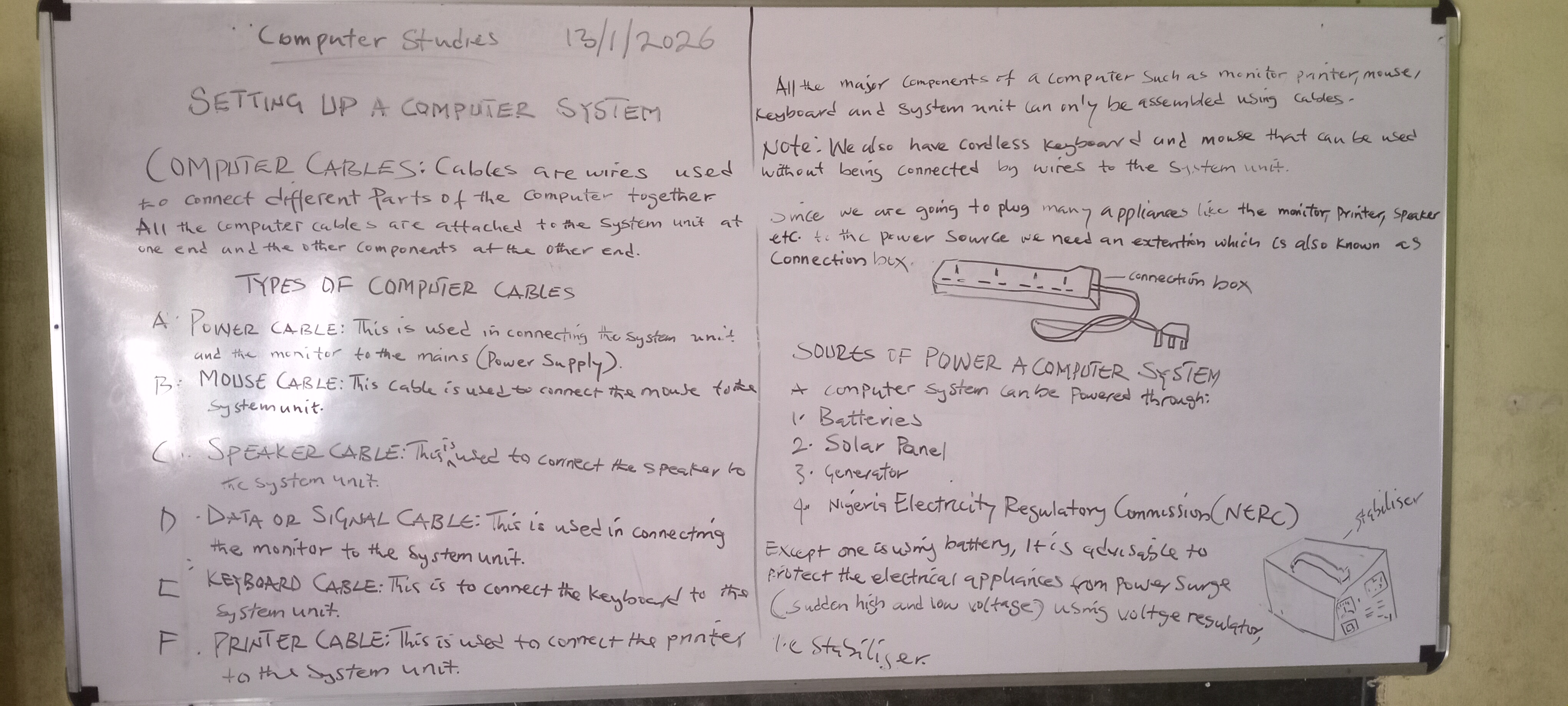 I have 6 classes to teach computer studies, so based on the timetable, I was free to start with primary three (3) before others as teachers will create time for me. In Primary 3, our topic was on learning how to set up a computer system for it to function.