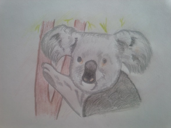 Almorzamos una sopa de caraotas con arroz, estaban bien buenas aunque no teníamos mucha verduras, las que quedó se guardó en un envase y se metió en la nevera, seguro comemos caraotas fritas para la cena. Volví a meterme al cuarto para ver televisión hasta las cuatro de la tarde que se fue la luz, como de costumbre , me puse a dibujar a un pequeño Koala, miren como quedó.