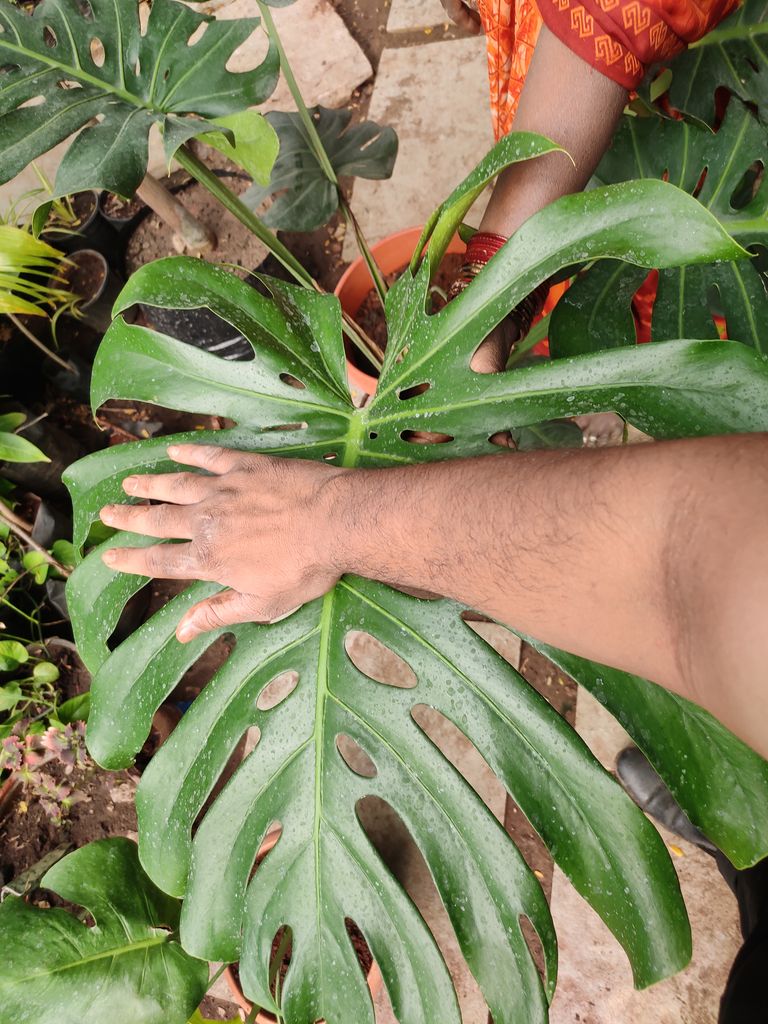 The leaves of this plant can go as big as 3 feet and wide enough. It used to be a rare plant and not many nurseries had them. Even now a days there are hardly any nurseries that sell this plant.