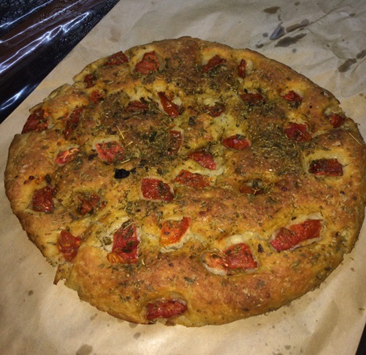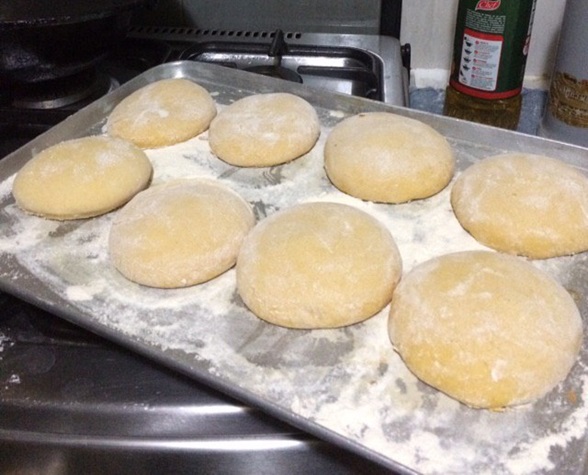 Focaccia, autor @jadnven.Mientras tanto, mi prima estaba en pleno apogeo haciendo unas galletas de huevo tamaño familiar, creo que esta gente tenía una baja de harina de trigo y repostería porque todo lo que había en la cocina tenía que ver con harina de trigo, lo cierto es que habían hecho un curso de repostería y trajeron sus conocimientos para la casa y disfrutar de ello.