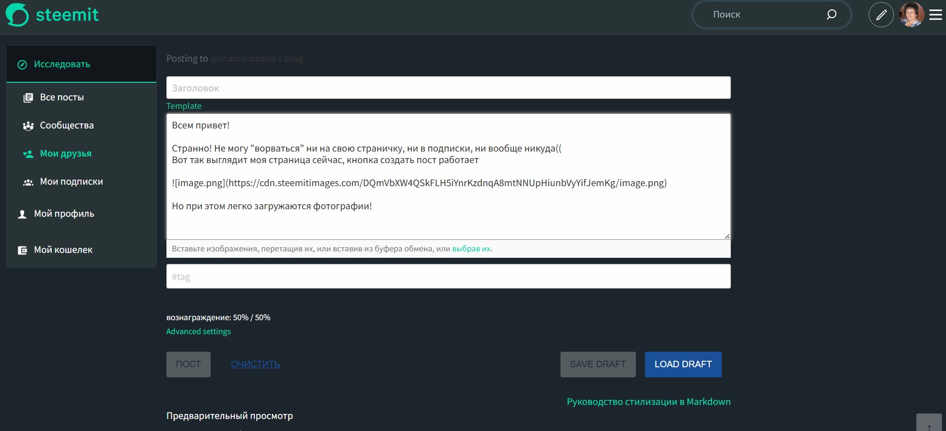 Я вообще не могу загрузить фотографии, поэтому перестала размещать посты. У других авторов тоже не вижу фотографии.