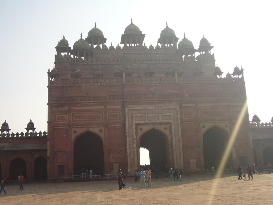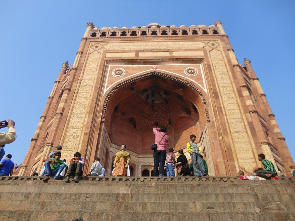 Del romanticismo de Agra nos aventuramos hacia la austera grandeza de Fatehpur Sikri, donde la Buland Darwaza se alza como una puerta de entrada a un imperio olvidado. El inmenso arco de arenisca roja, grabado con caligrafía persa, parecía desafiar al tiempo mismo. Mi abuela, siempre una gran narradora, relató la historia del sueño del emperador Akbar de una «ciudad de la paz». De pie bajo su imponente dintel, sentí el peso de la historia presionando suavemente sobre nuestros hombros, instándonos a caminar con humildad.
