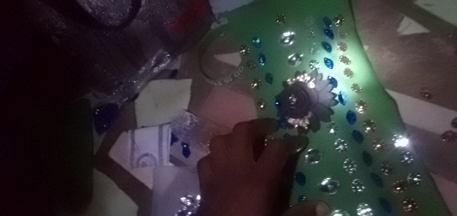 In the house after dinner with my son, I started making headband for my friend and then go to bed.