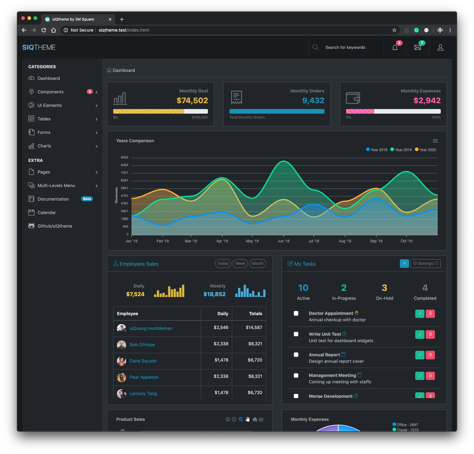 Preview siQtheme Dashboard