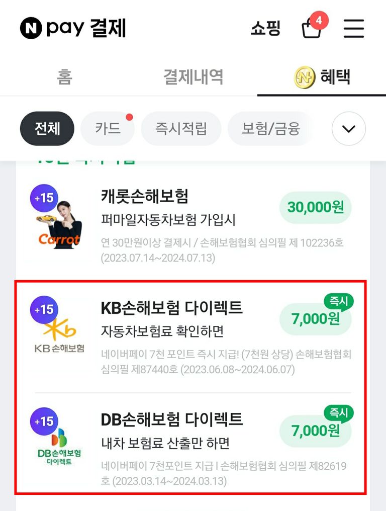 자동차 보험 만기 30일 전 타사 자동차 보험 조회해서 네이버 페이 받기