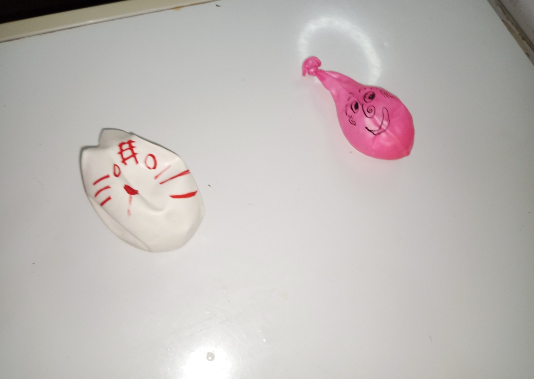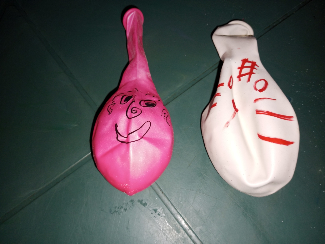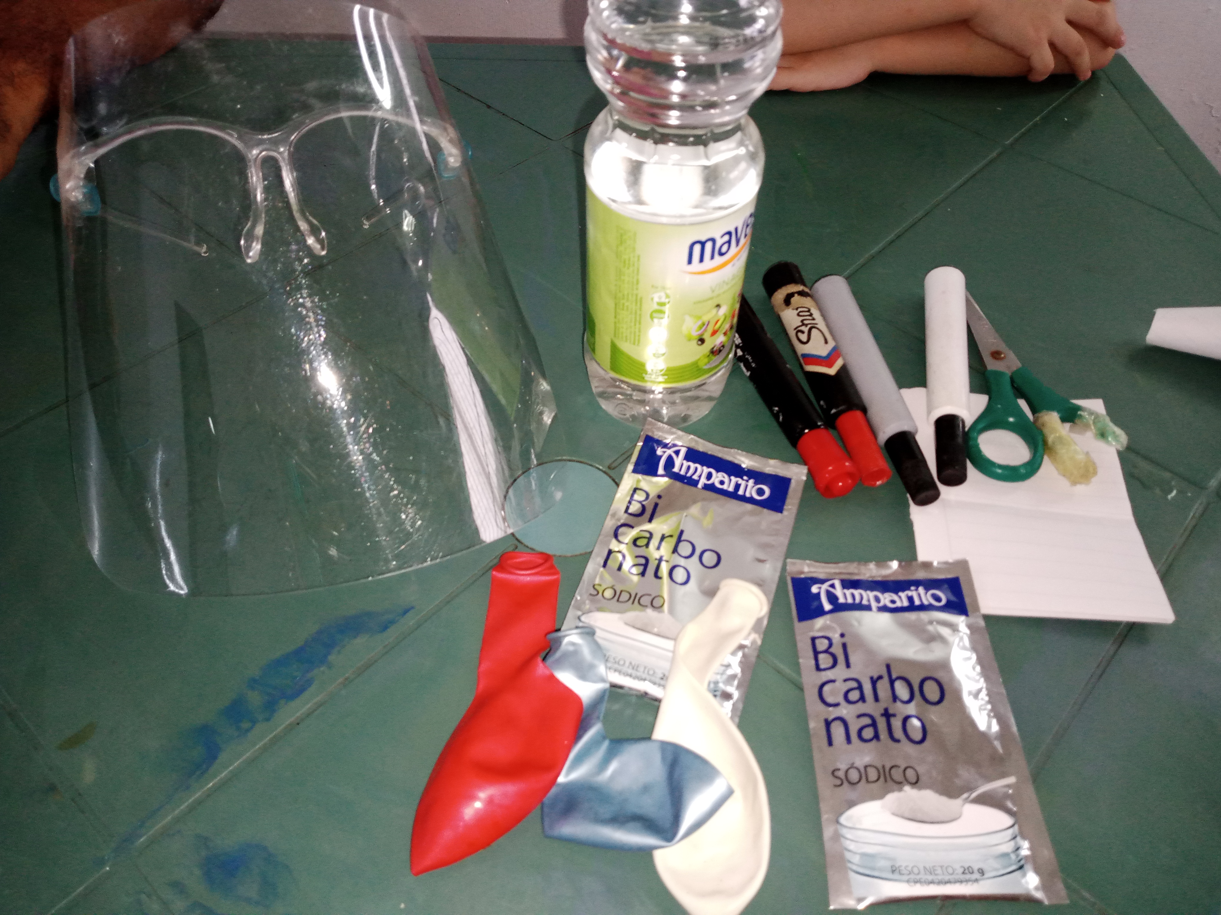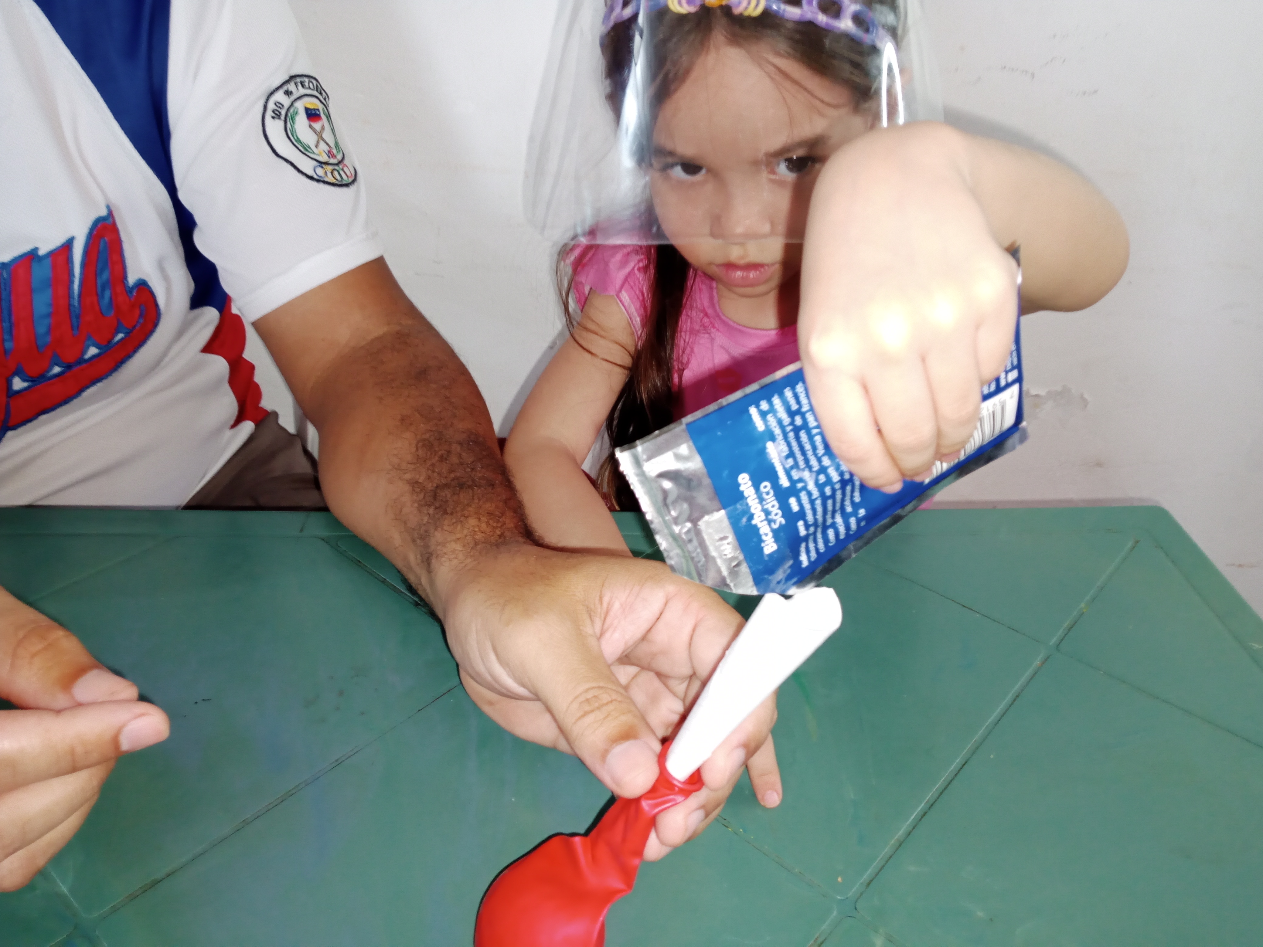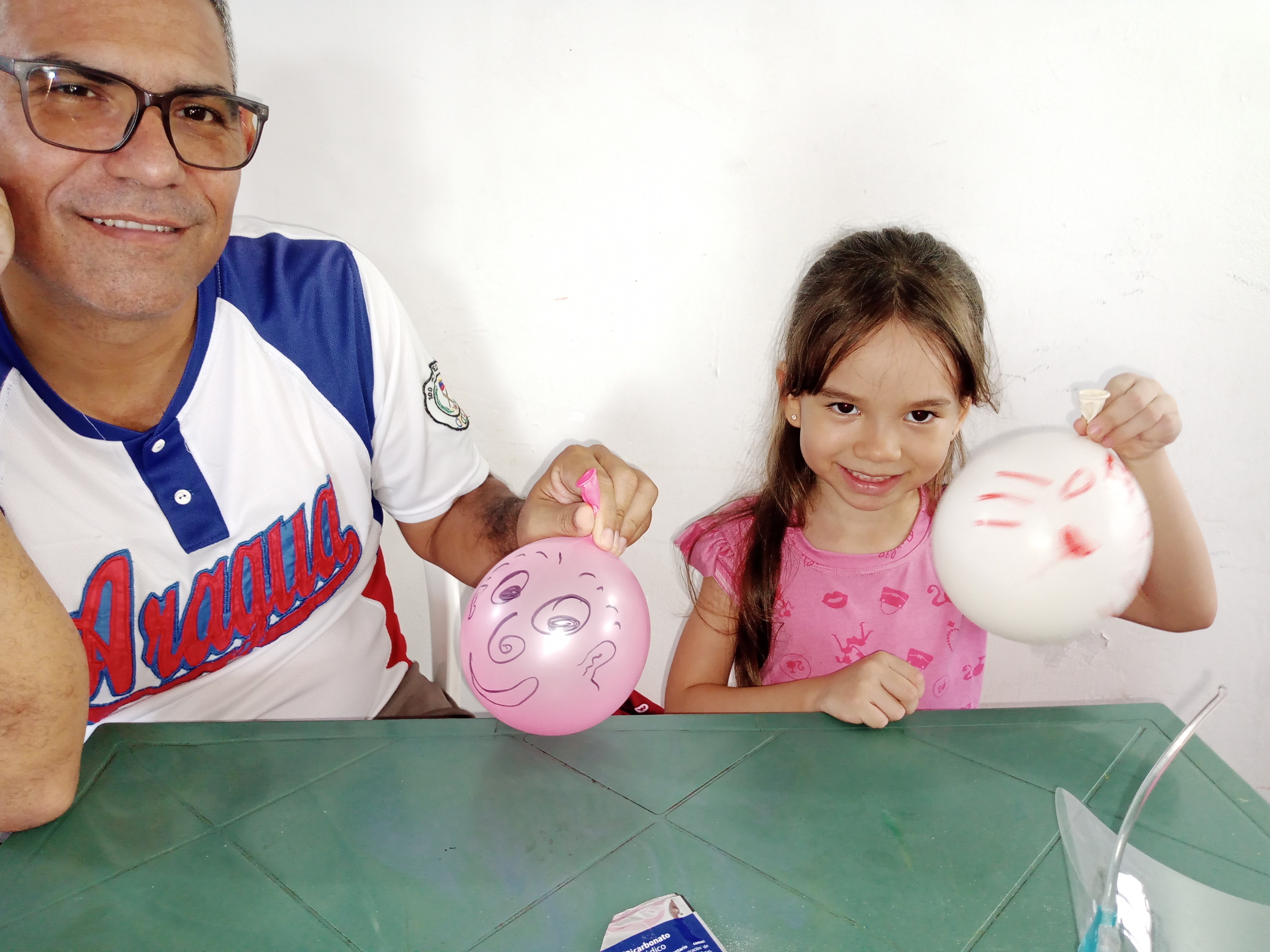 Bueno cuando estábamos llenando los globos con el bicarbonato nos dimos cuenta que habían unos rotos, el rojo salió mal, y también uno azul que habíamos llenado y nos tocó cambiar de globos.