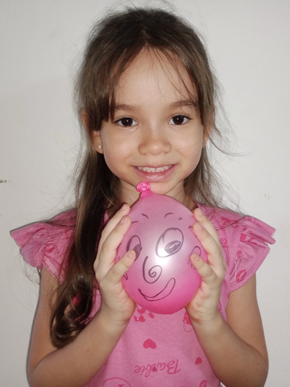 Aunque es una niña pequeña entiendo perfectamente que al juntar al vinagre con el bicarbonato se había producido un gas que hizo que se inflaran los globos, estaba sorprendida y encantada.