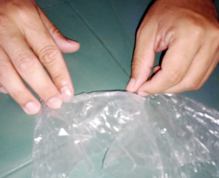 Paso 4: Ahora tocaba agregar el vinagre pero este iría en una bolsita a parte ya que no se podía mezclar con el bicarbonato.