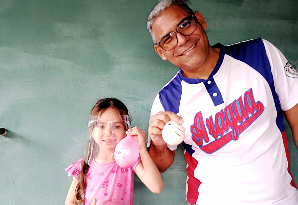 Para luego mientras yo abría bien los globos, Nicole introducía los paquetitos de vinagre.