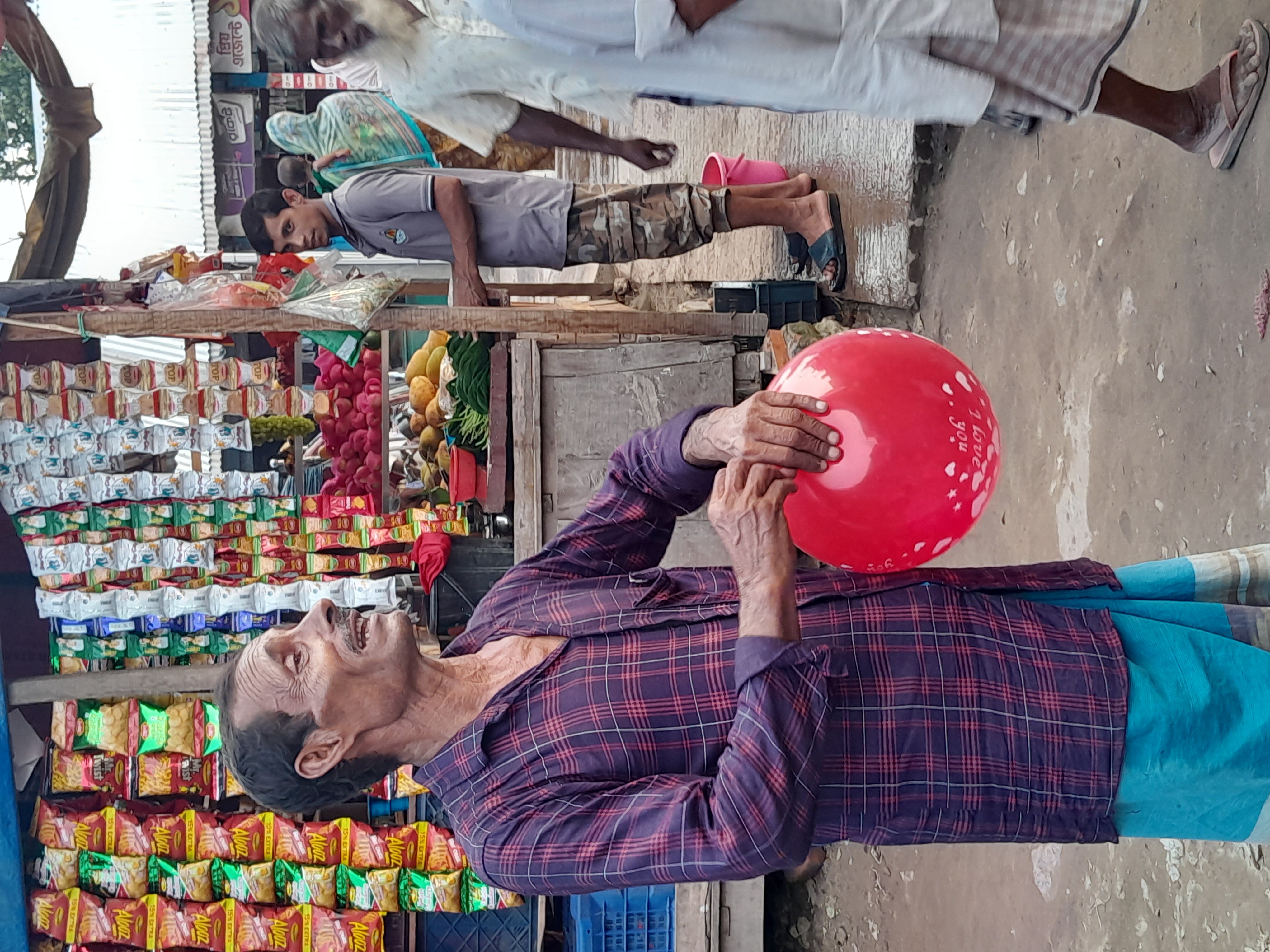 আমরা কাঁচা বাজার করছিলাম আর নিজাম ভাই বারবার আমাদের কাছে এসে ঘুরপাক করার চেষ্টা করছিল। বিষয়টা বুঝতে আমার আর বিন্দুমাত্র বাকি থাকলো না। তাকে এবার বলেই ফেললাম কত করে বেলুন, সে হাসি মুখে বলল ১৫ টাকা করে। বিক্রি একদম শেষের দিকে তো আর এই দুটো আছে, এ দুটো বিক্রি হলেই বাড়ি চলে যাব।