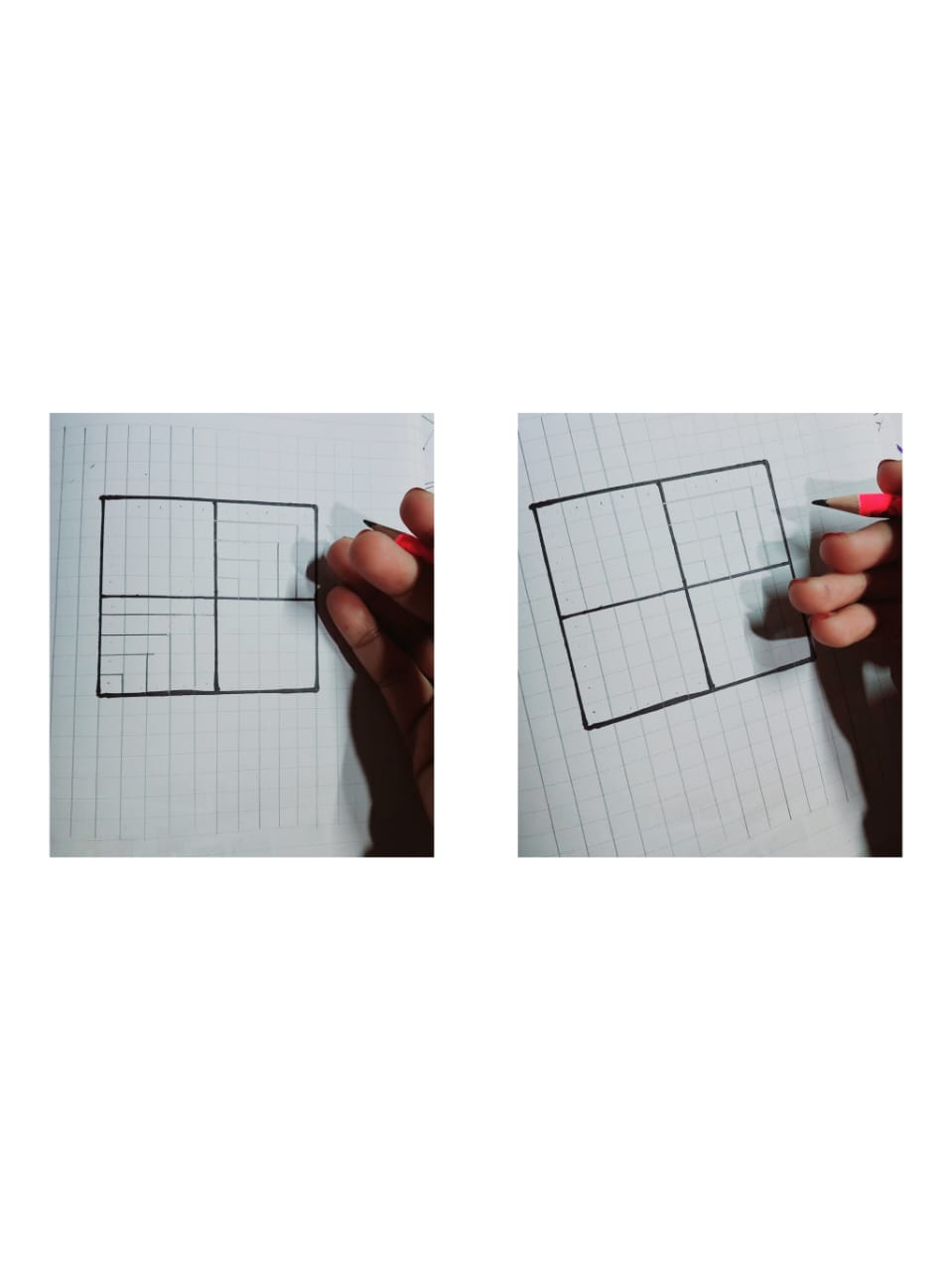 - এখন আমি ঘরের দুই কর্নারের দুটি ঘরের মধ্যে নিজের ছবির মত করে পেন্সিল দিয়ে দাগ দিয়ে দিলাম।