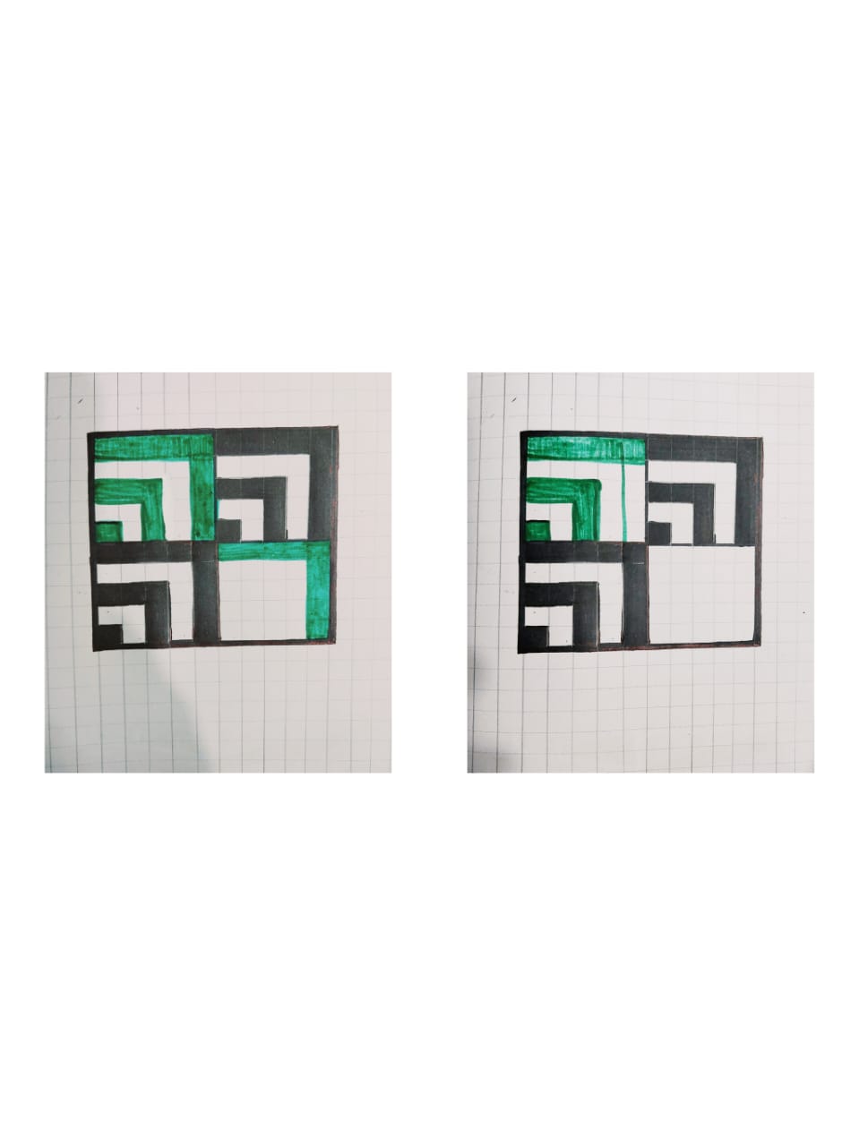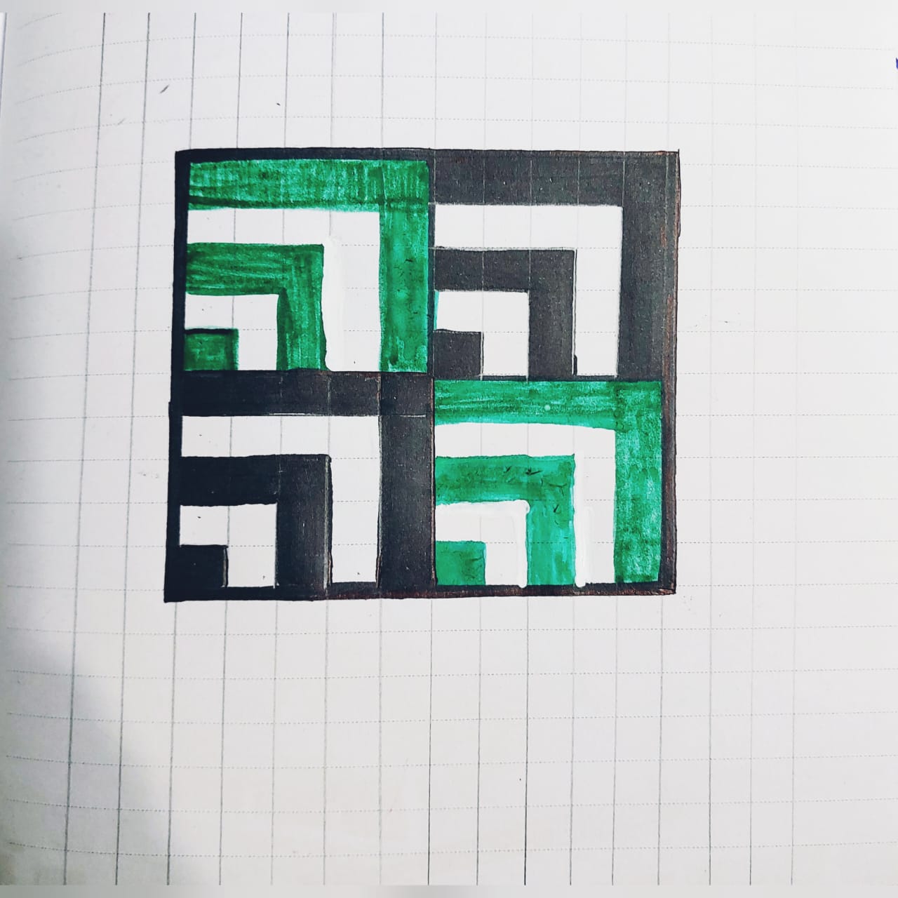 - ঠিক একইভাবে অন্য দুই পাশের ঘরগুলোর সবুজ মার্কার দিয়ে সবুজ রং করে নিলাম।