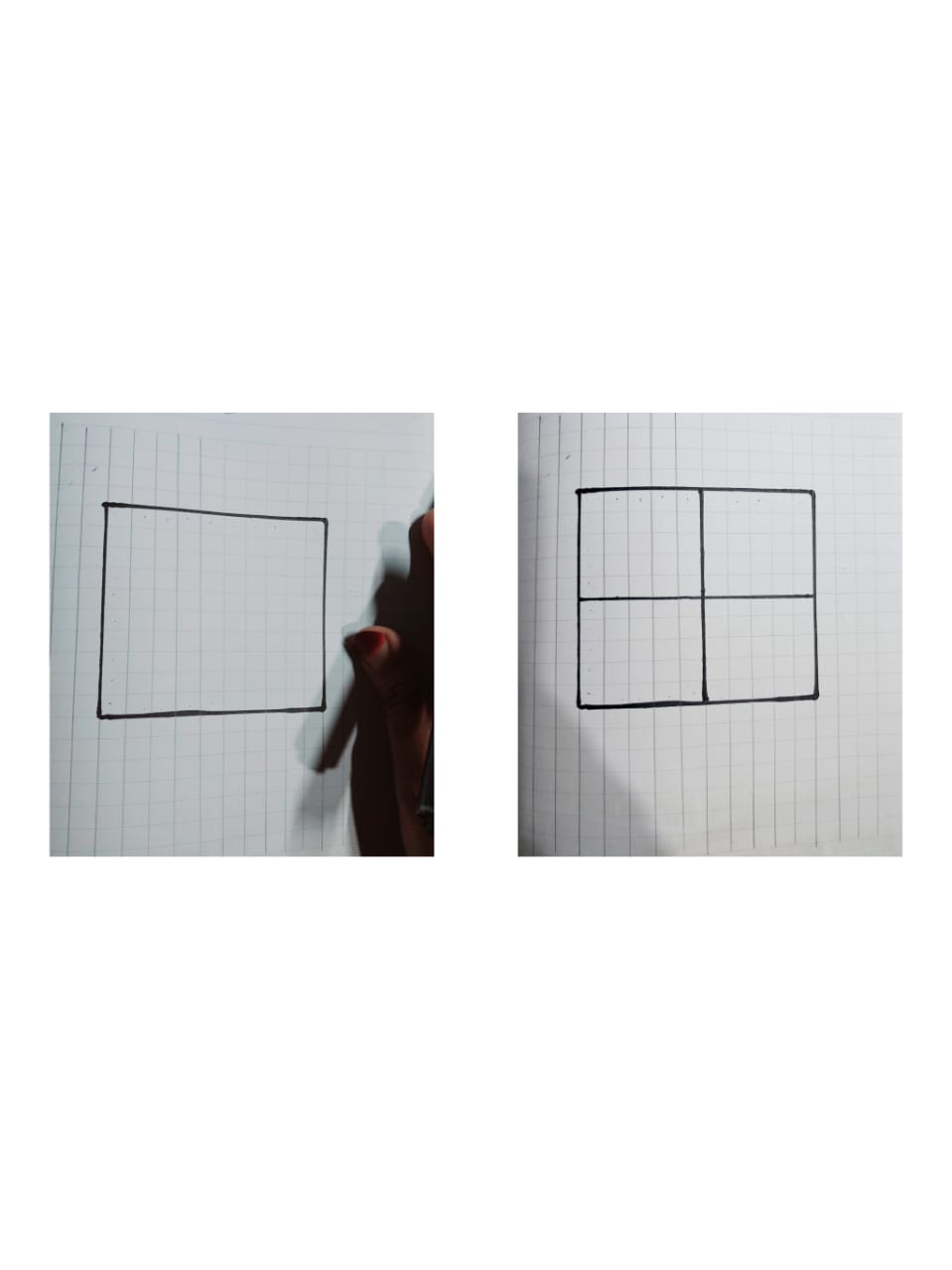 আমি মার্কার পেন দিয়ে একটি ঘর তৈরি করলাম এবং মাঝখানে আরো দুটি দাগ দিয়ে চারটি ঘর তৈরি করলাম।