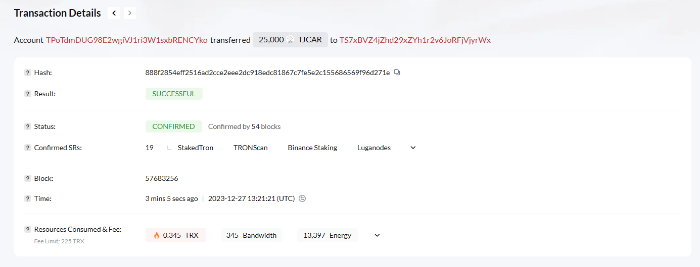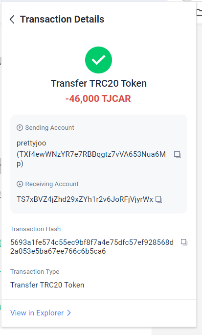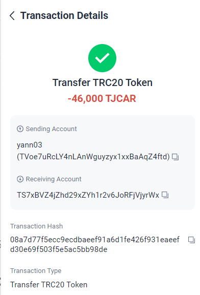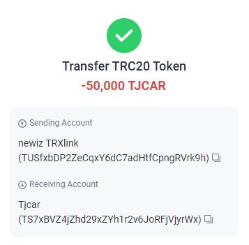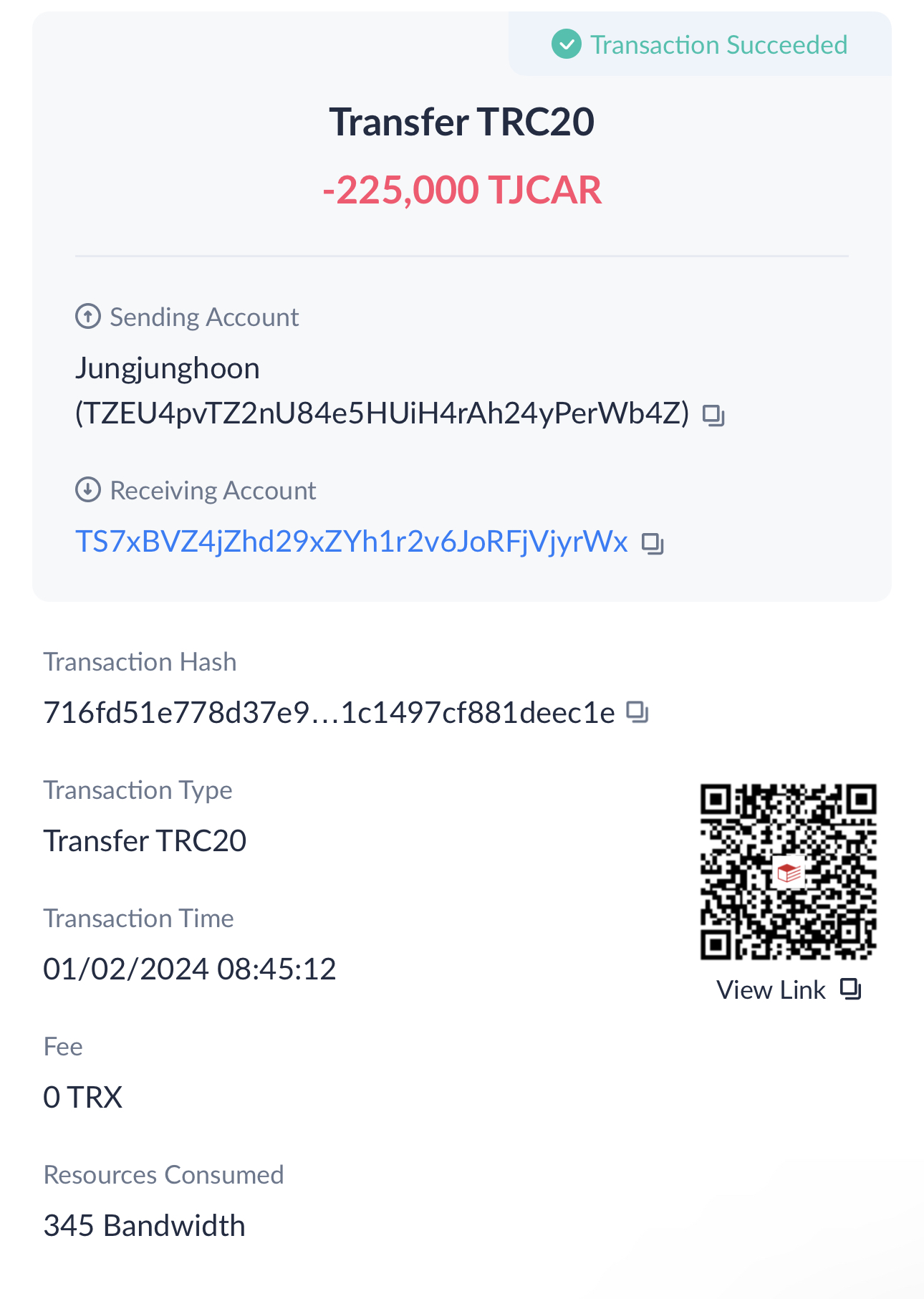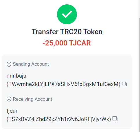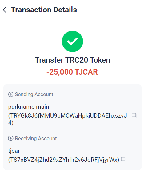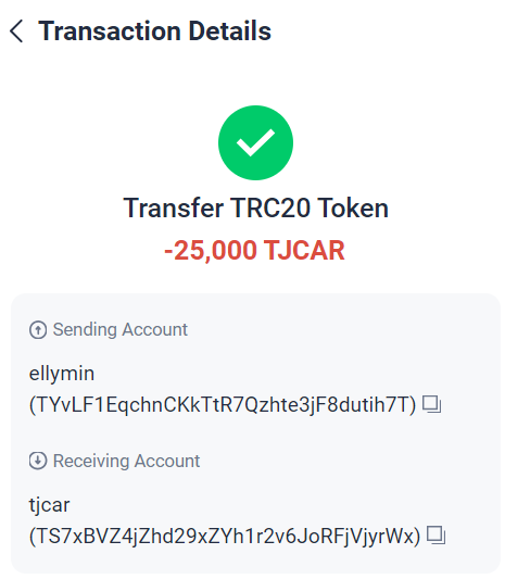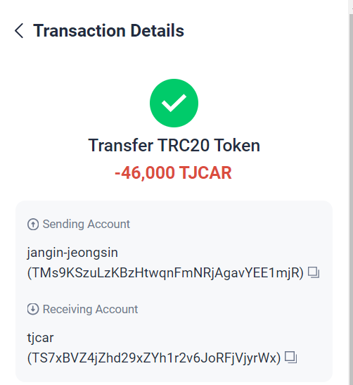 TJCAR 컨트랙트 주소 : TNHRQryXDyYSyqFHq8UqCYFSc6dzp81Dxa