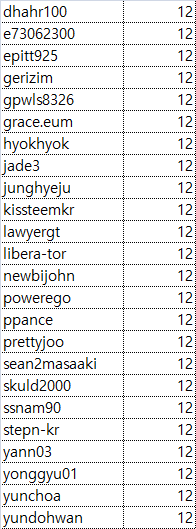 @dhahr100 @e73062300 @epitt925 @gerizim @gpwls8326 @grace.eum @hyokhyok @jade3