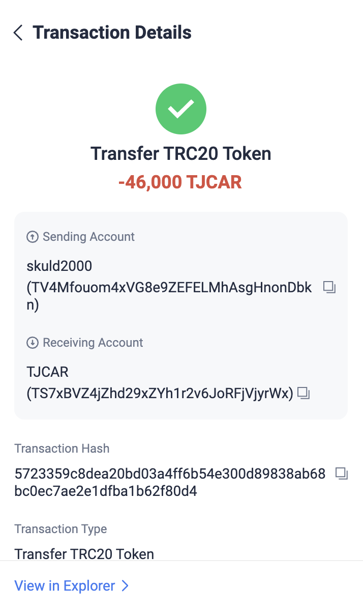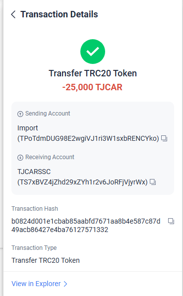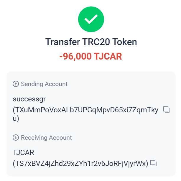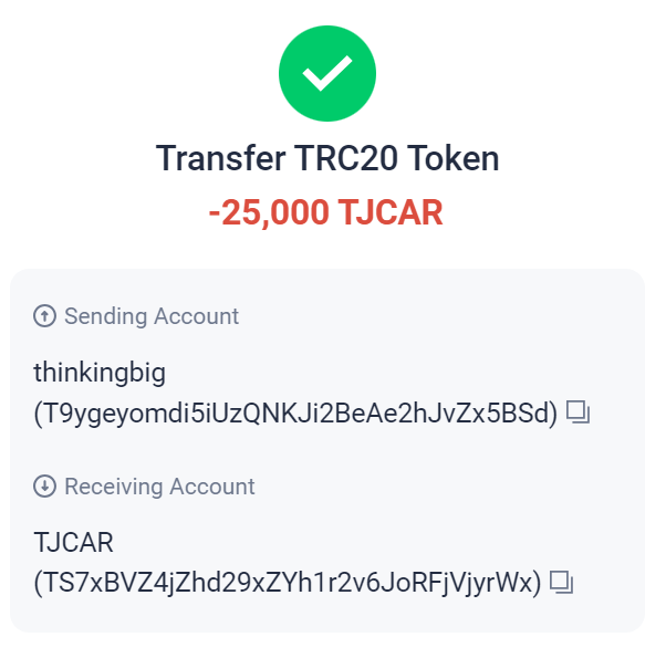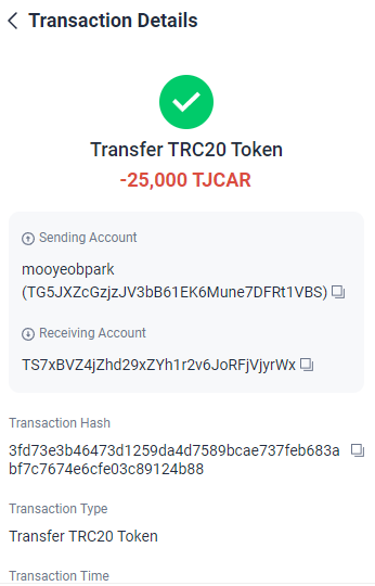 TJCAR 컨트랙트 주소 : TNHRQryXDyYSyqFHq8UqCYFSc6dzp81Dxa
