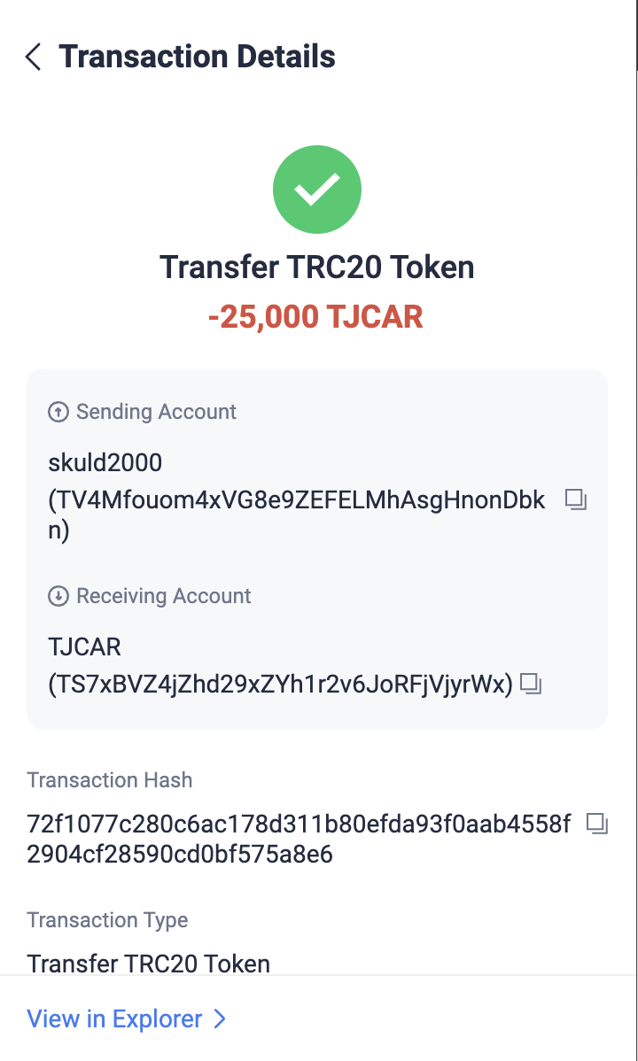 TJCAR 컨트랙트 주소 : TNHRQryXDyYSyqFHq8UqCYFSc6dzp81Dxa