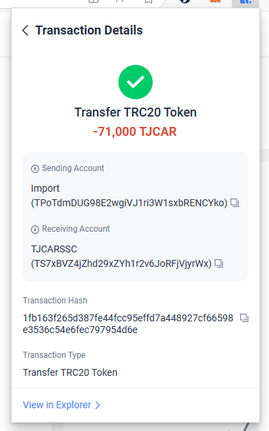 TJCAR/TRX POOL 페어 주소 : TWRhY8zuHWr1sM8jb99K8G9iAZEn4Y5Q79