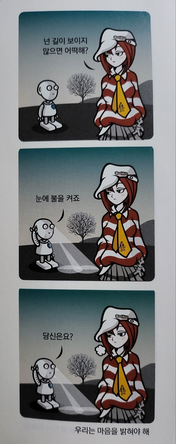 해당 사진을 보면 어두울때 어떡하냐고 묻는 답에 기계적으로 불을키면 된다고 하는데,