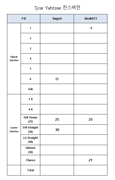 [Tjcar 야찌 찬스전 4월 리그 ] 6라운드 주사위를 던져주세요.
