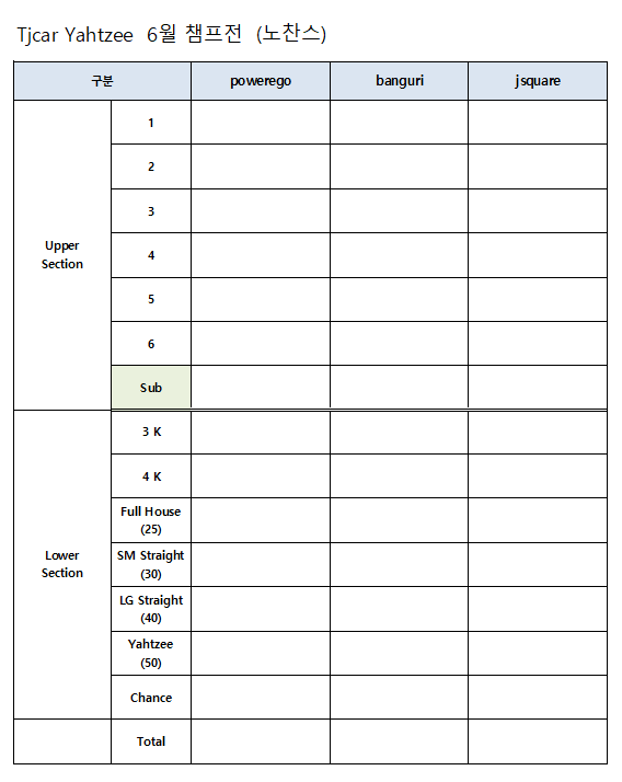 Tjcar야찌 6월 챔프전을 개시합니다.