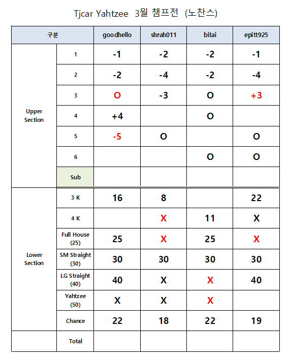 Tjcar야찌 챔프전을 시작합니다.