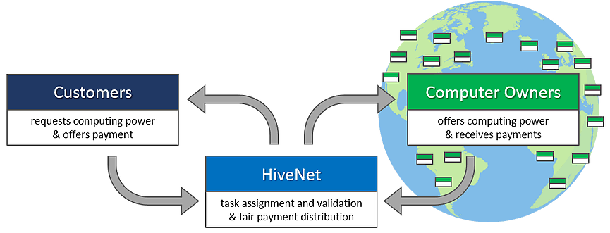 HiveNet has an inherent cryptocurrency: HiveCoin. HiveCoins is used to pay for computing power in HiveNet. With this ongoing demand for HiveCoins is ensured and will create one of the few cryptocurrency with real and fundamental value, which provides excellent short-term and long-term opportunities for tradersCustomers