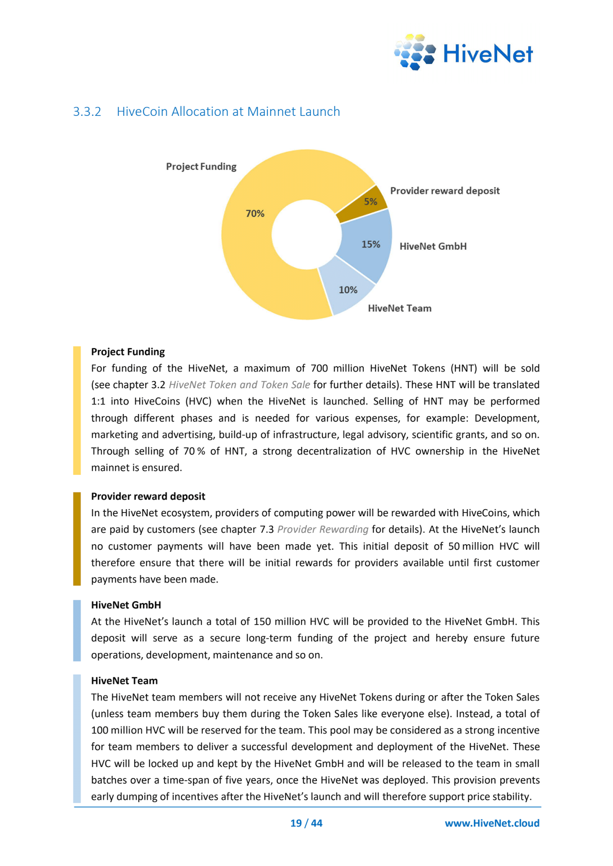 The HiveNet will initially be funded through the sale of HiveNet Tokens (HNT). HiveNet Tokensare ERC-20 token and is compatible with many walls and other third-party systems to ensure simple handling.Legal Compliance