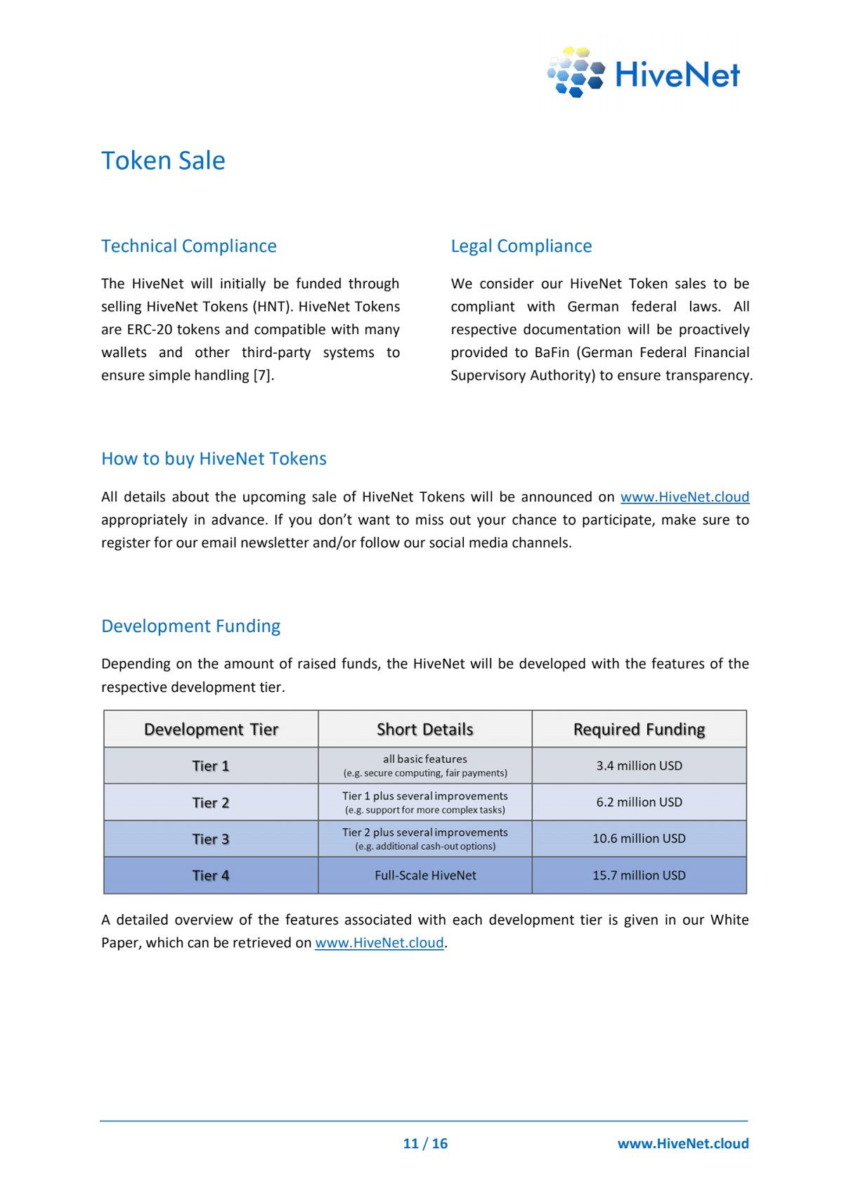 We consider our HiveNet Tokens sales to be compatible with German federal law. All responsive documentation will be effectively distributed to BaFin (German Federal Financial Supervisory Agency) to ensure transparency.