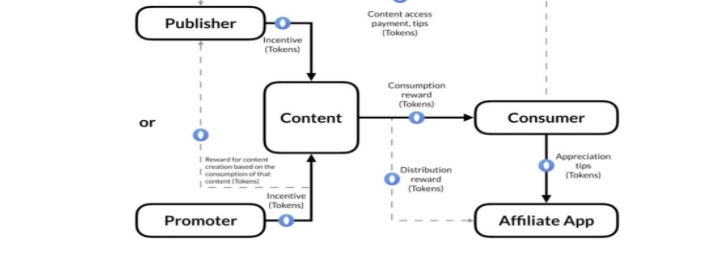 It permits any URL and other sharing blockchain technologies to be registered on an Ethereum system and form a part of transaction between content creators, publishers, promoters, distributors, and end users. There are basically four main links between end users and publishers as discussed below: