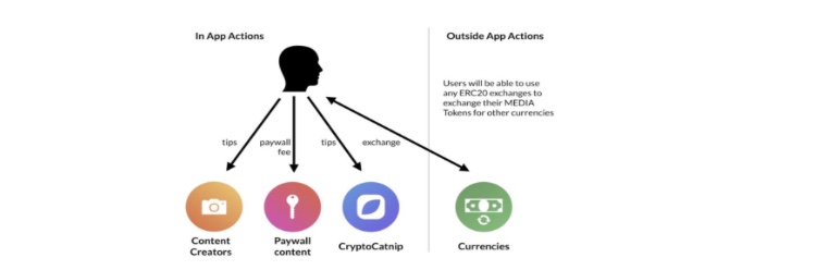 The token economy establishes an internal two-way token flow between content users and promoters. It also encourages token hold time and complements standard in-app users. Some of the features of the economy include: