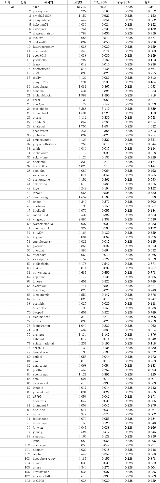 - 보팅$은 개인 80%, 공동 20%로 조정됩니다. (너무 긴 관계로 31회만 예시로 옮깁니다)