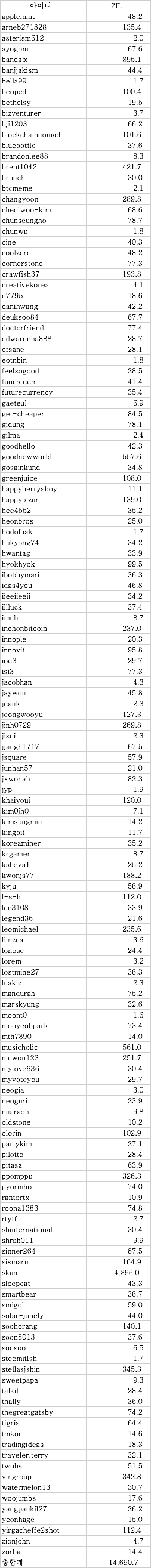 - 개인별 ZIL 누적 분배량입니다. 이전에 분배받지 않으신 분들만 누적됩니다.