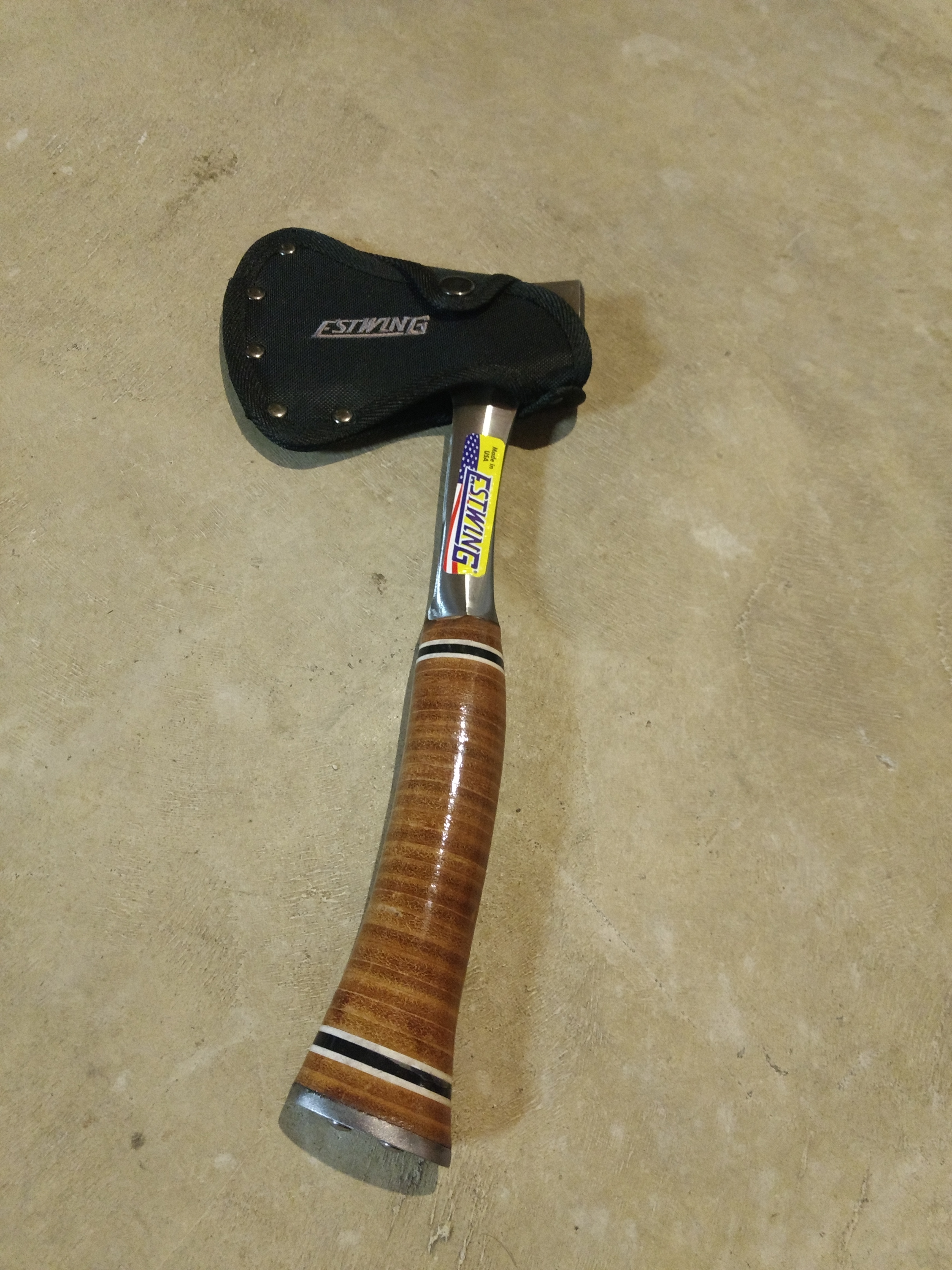 Tonight I want to show off a hatchet I got for Christmas. It's a Estwing. Holding it, it's really obvious that it's a quality piece of work.