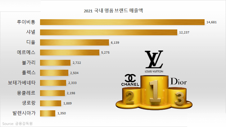 2021년 명품 브랜드 국내 매출 순위 TOP 10