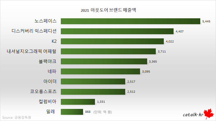 2021-2022 가장 많이 팔린 아웃도어 브랜드
