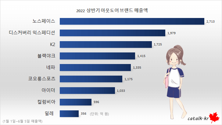 2022년 아웃도어 브랜드 매출 순위 TOP 9