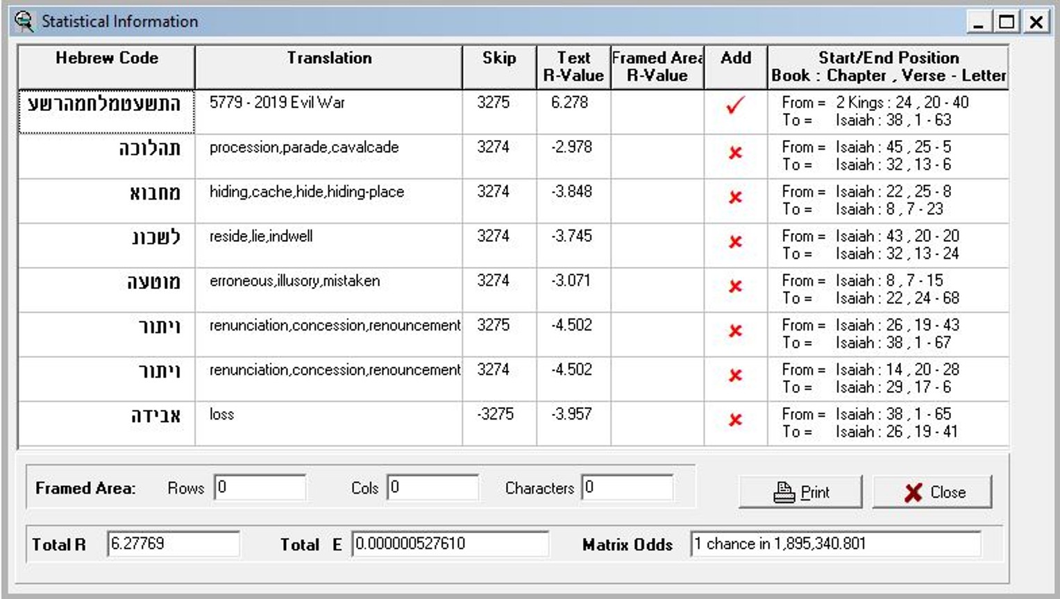 2019 Wicked War - 5779 War Evil - one Bible Code with high odds against randomness.