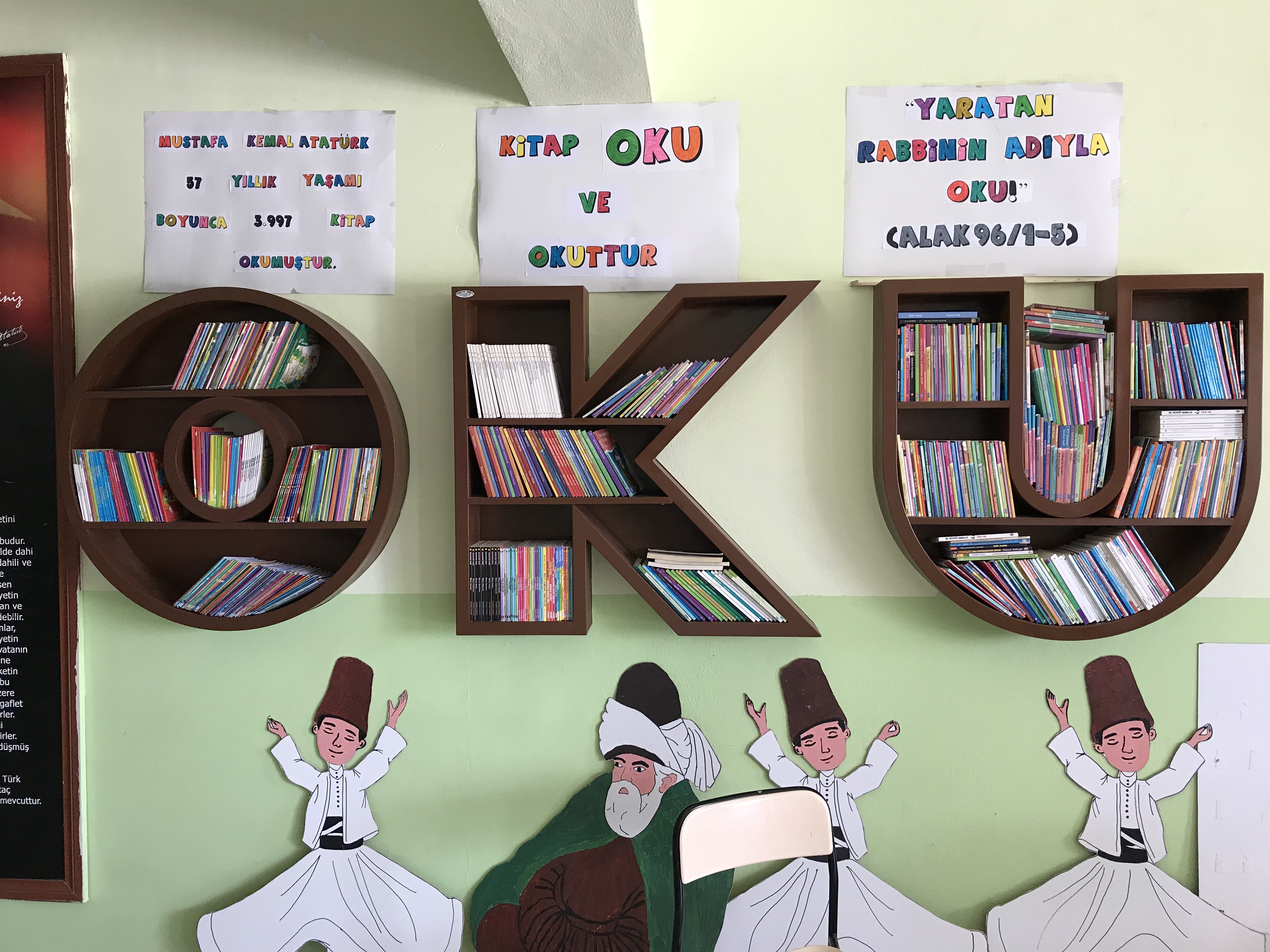 Bugün gittiğim bir ilkokulda öğrencileri okumaya teşvik edici güzel bir kitaplık yapıldığını gördüm ve hemen sizlerle paylaşmak için gotografladım.