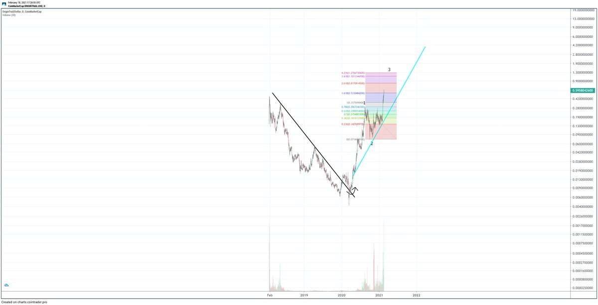 TRAC Tokenhaejin (89)in #trac • 5 years ago TRAC token established a solid uptrend. As long as blue line holds, trend remains up. A sell signal if blue line breaks to the downside. Elliott Waves shows wave 3 in progress; once complete, it'll probably touch off the blue line to higher highs.