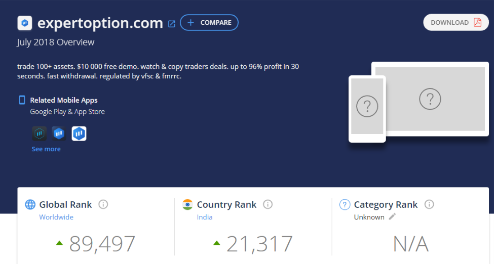 As you can see the traffic generated by the EO.finance application is very high considering the month of July, also Expert Option is high but certainly as soon as they get the regulation from countries where trading is very important USA, CANADA and Europe, will probably grow much.