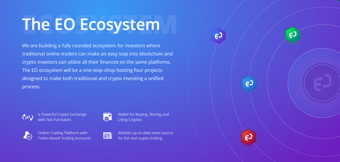 The EO ecosystem will be a one-stop-shop hosting four projects designed to make both traditional and crypto investing a unified process.