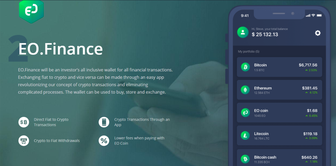 EO.Finance will be an investor’s all inclusive wallet for all financial transactions. Exchanging fiat to crypto and vice versa can be made through an easy app revolutionizing our concept of crypto transactions and eliminating complicated processes. The wallet can be used to buy, store and exchange.