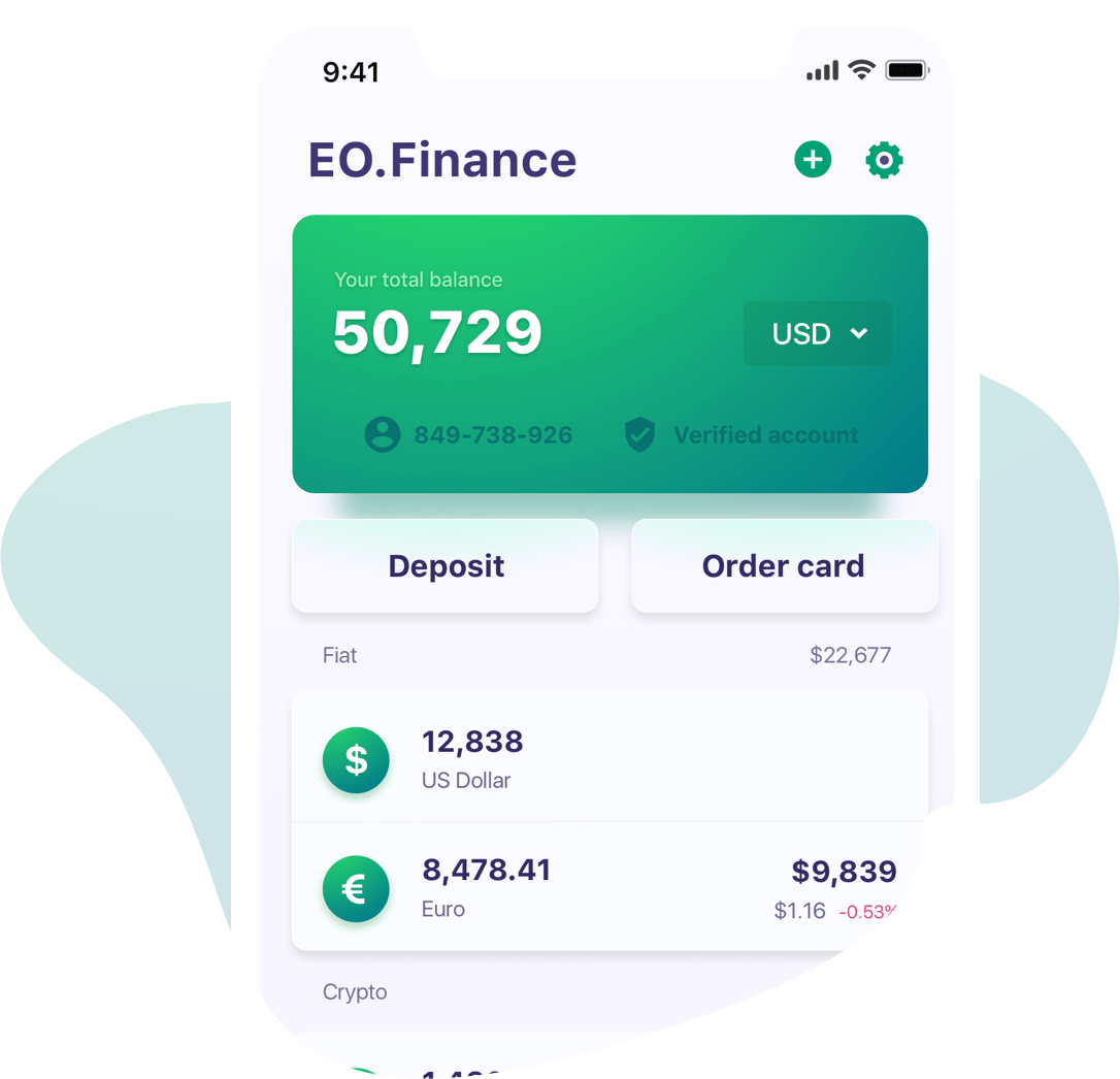 We will create 50+ accounts in different currencies for you. Easily add funds using your bank cards and wire transfers. We work with all blockchain wallets and exchanges. You can use EO.Finance for storing and hodling your funds.