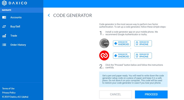 The next step is to download any of the code generators of choice, either google authenticator or Authy 2-Factor Authentication.