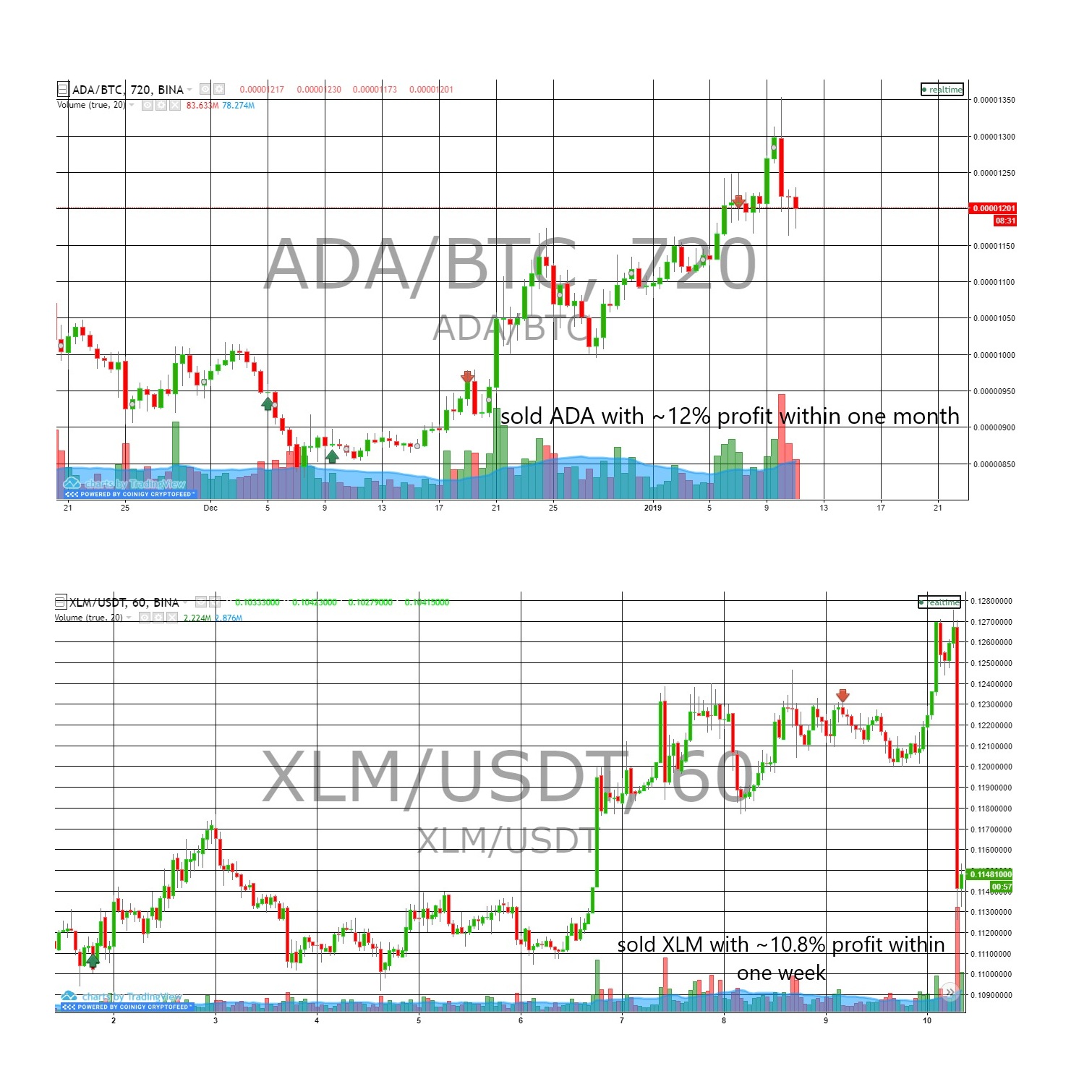 Bought XLM down at 0.111 and sold it with ~10.8% profit at 0.123