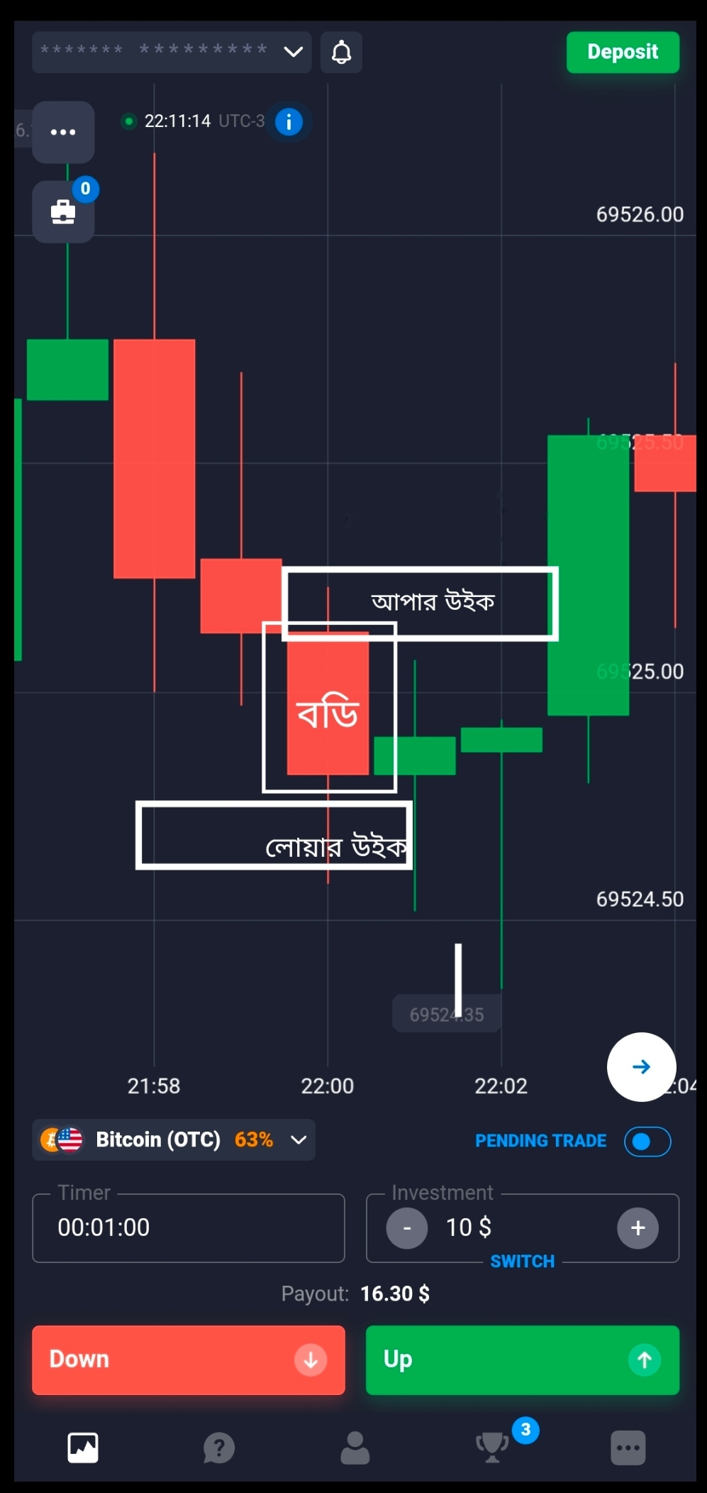 ট্রেন্ড : মার্কেটে লাগাতার একই দিকে ক্যান্ডেল তৈরি হয়ে যদি চলতে থাকে তাহলে সেটা ট্রেন্ড। [ স্ক্রিন শর্ট দেখলে ক্লিয়ার হয়ে যাবেন]