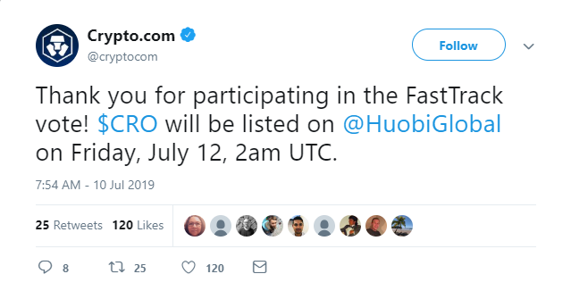 Huobi had the other token as winners but according to crypto.com's twitter, they're being listed on Huobi as well which coincides with the rocket ship up.