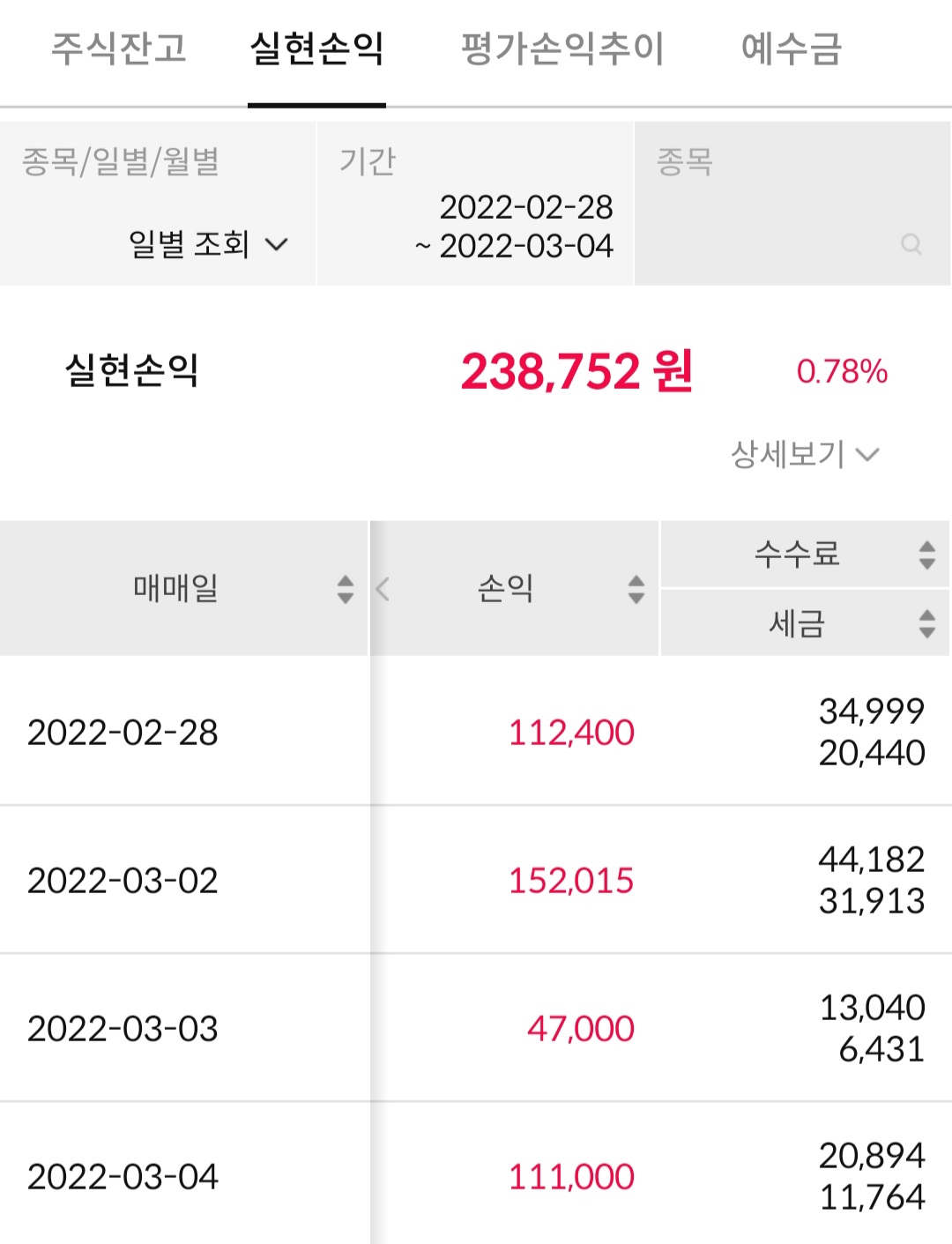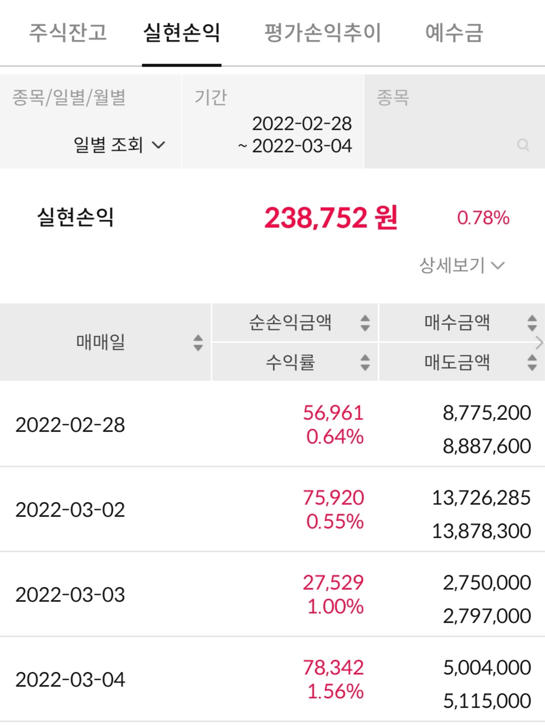 3월 1주 국내주식 실현손익